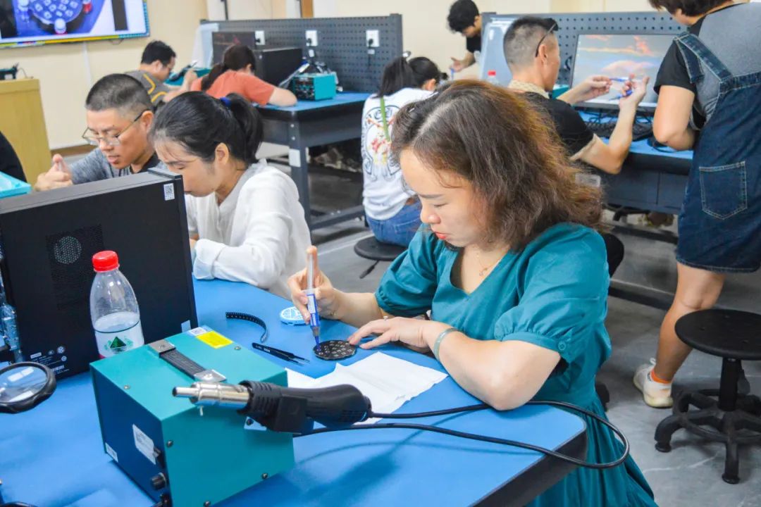 學(xué)員們依次參觀了宿舍、食堂及朱子學(xué)堂、數(shù)字建模教室等各實(shí)踐活動(dòng)教室,了解具體課程架構(gòu),分組體驗(yàn)定格動(dòng)畫制作、智能硬件制造、武夷茶道和木藝技術(shù)四門實(shí)踐活動(dòng)課程。就如何將基地實(shí)踐教育經(jīng)驗(yàn)應(yīng)用到學(xué)校實(shí)踐課程與基地作了深入交流探討。